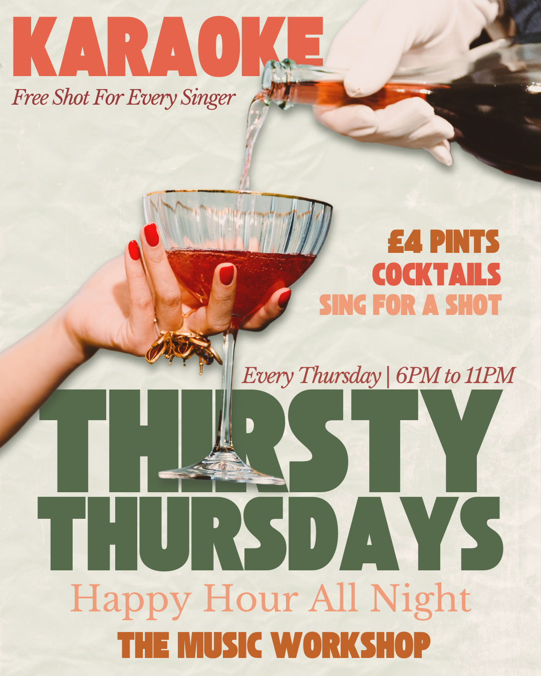 •Happy Hour all night •£4 pints •Happy Hour cocktails •Sing a karaoke song – get a free shot!