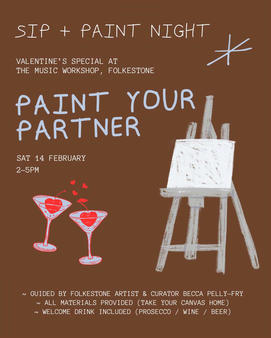 This is a relaxed, fun and creative event at The Music Workshop, Folkestone where you’ll be painting each other’s portraits.